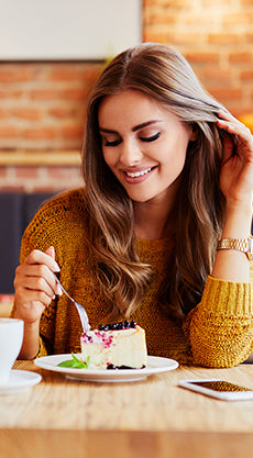 Girl enjoying a Pastry with coffee